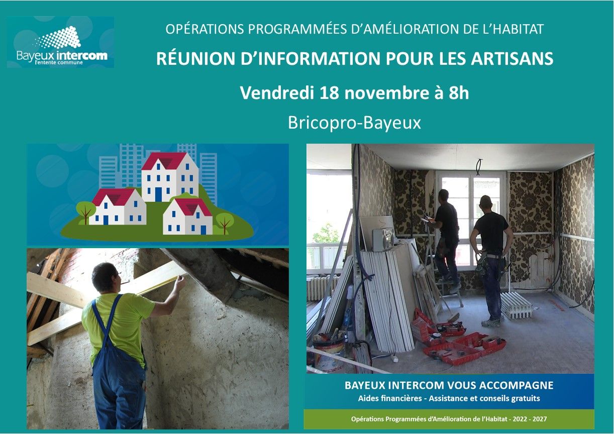 Réunion d’information à destination des artisans sur le déroulement des Opérations Programmées d’Amélioration de l’Habitat (OPAH) 2022-2027, animée par le groupement CDHAT / SOLIHA missionné par Bayeux Intercom.